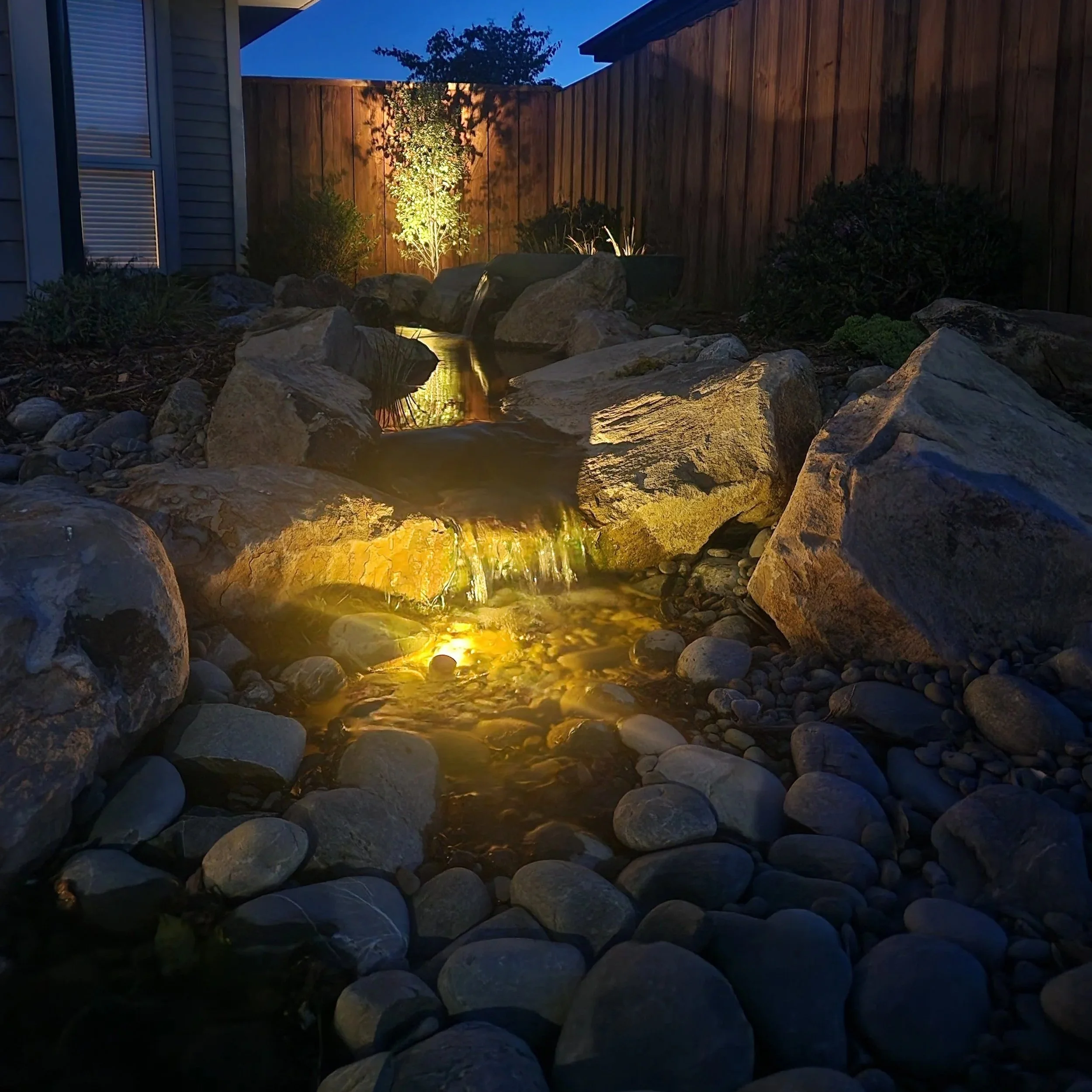 We build pondless waterfalls for residential gardens throughout Christchurch, Selwyn and the wider Canterbury region. Each waterfall is custom designed to suit the site, ensuring a natural appearance and reliable performance year-round.